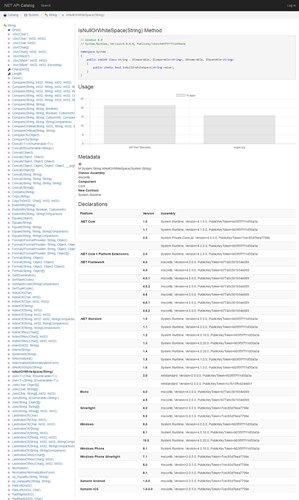 Showing the page for String.IsNullOrWhiteSpace from apisof.net (image has been cropped to remove unnecessary detail, click to enlarge)