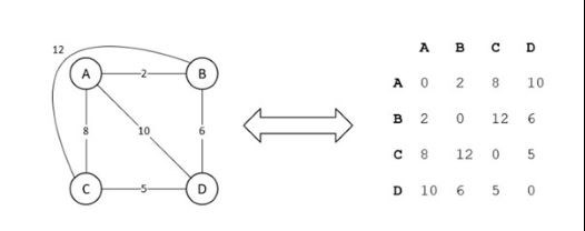 This fact can be further translated to a 2x2 matrix which represents the distance between the two nodes. In this instance, we’ll refer to A as the office, which is node zero. Note that the matrix is symmetrical which means that the distance from A to B is the same as the distance from B to A. Further evidence of this is illustrated in the diagonal line of symmetry in the matrix.